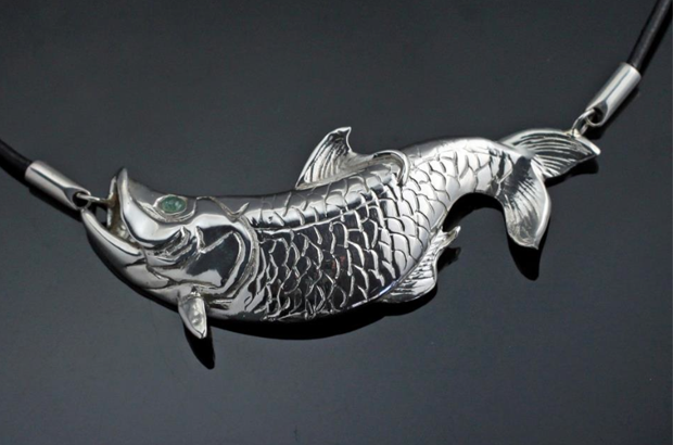 Tarpon Necklace from Anisa Design is striking in both sterling silver (shown), and its bronze counterpart.